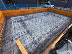これから配筋検査を行い、まもなく耐圧版の打設となります。