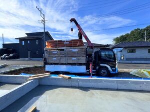 2025-09-28 / 最終更新日時 : 2025-09-28 梶原建築 新築 新築工事。プレカット材が搬入しました。 「呉井塚の家」新築工事 プレカット材が搬入しました。 とはいえ、これは一部。 外周のパネル化した部材は建て方当日入りです。 また後日、屋根ケラバのパネルと断熱材を搬入します。 FacebookXBlueskyCopy