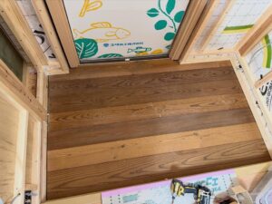 今回の玄関土間は木で納めています。