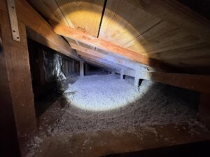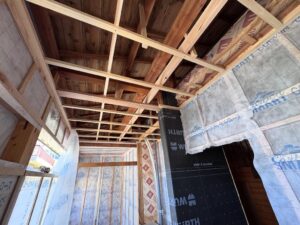 壁と天井の断熱はセルロースファイバーの吹き込みを採用。