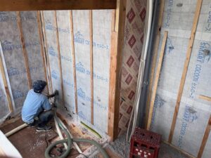 自宅水廻り改修。セルロースファイバーの吹き込み。