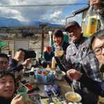 途中、工事リーダー梶原と発起人斎藤は地元紙の山梨日日新聞の取材を受けました。